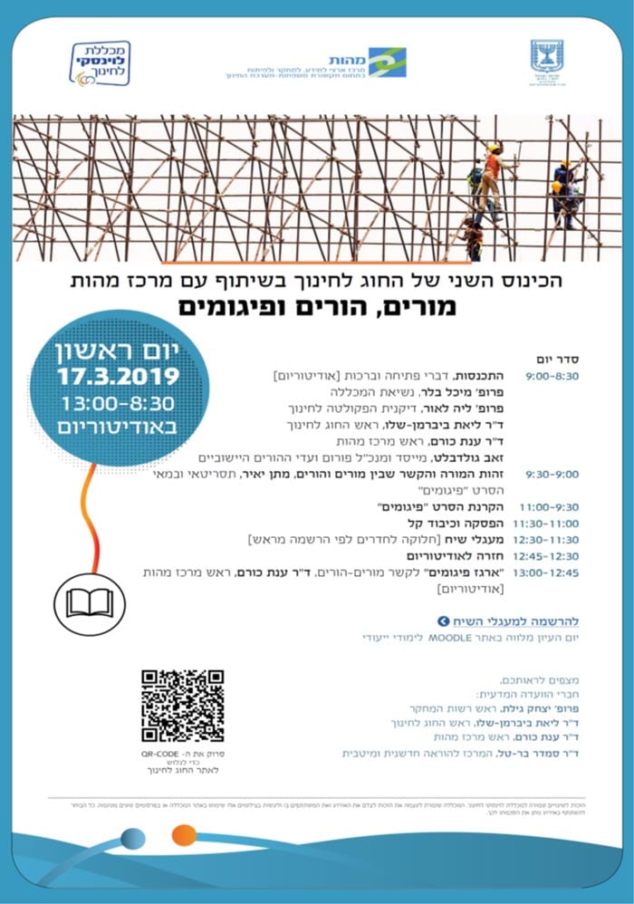 הכינוס המדעי ה-2 של החוג לחינוך בשיתוף עם מרכז מהות בנושא: "מורים, הורים ופיגומים" 17.03.2019