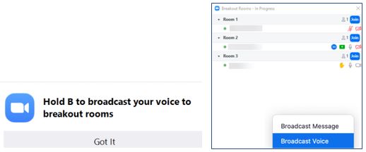 לאחר שהחדרים פתוחים, החזיקו את מקש "B" לחוץ במקלדת והתחילו לדבר כדי שהלומדים ישמעו אתכם.