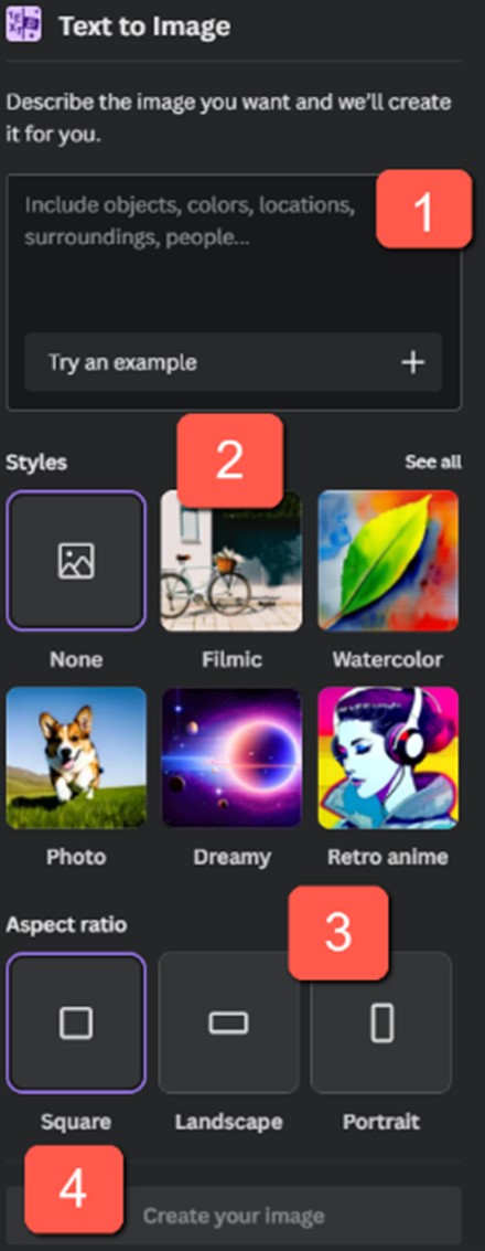 כבר מהשלב הזה אתם יכולים ליצור את התמונה בלחיצה על create your image (מספר 4).