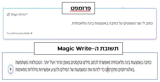 בלחיצה על ה-+ מתגלה כלי הכתיבה של הבינה המלאכותית – MAGIC WRITE.