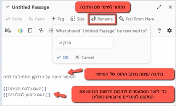 5. תיבת הטקסט היא המקום שבו כותבים את הסיפור עצמו, וכן את ההסתעפויות שאליהן אפשר לעבור.