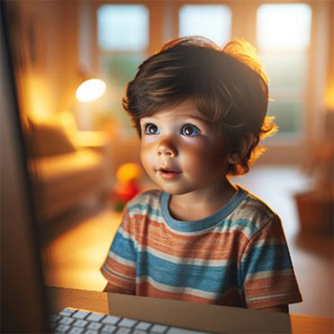 פרומפט: "צייר תמונה של ילד מסתכל במסך מחשב".