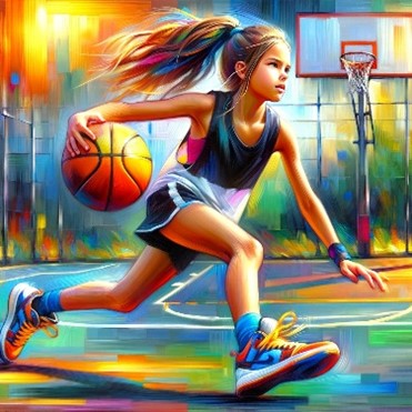 פרומפט: "צייר לי ציור של ילדה משחקת כדורסל".