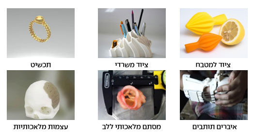הינה כמה דוגמאות של מוצרים שימושיים יותר ושימושיים פחות שהודפסו בתלת־ממד.