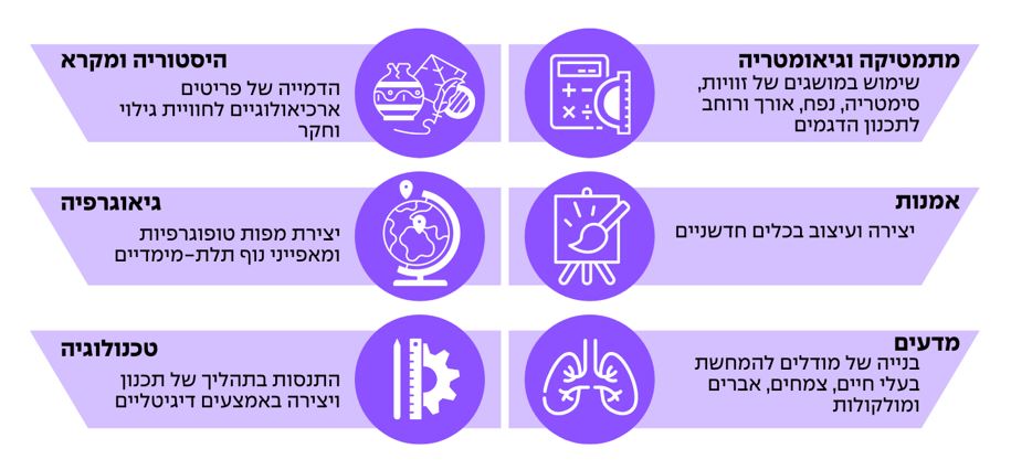 הינה כמה דוגמאות לאפשרויות השילוב של ההדפסה בתלת־ממד בהוראה: