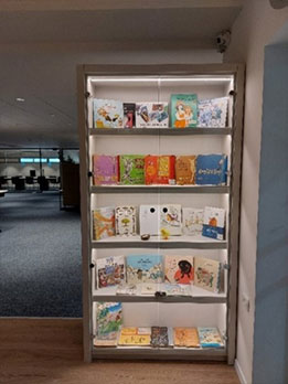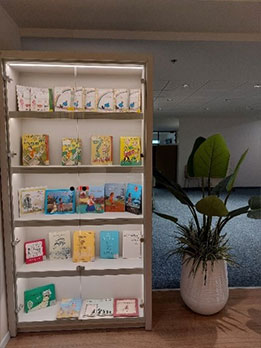 במרכז חלונות תצוגה ובהם מוצג מבחר מספריו הידועים ביותר של קיפניס, וכן תצוגות קטנות מתחלפות משל יוצרים אחרים או על פי נושאים.