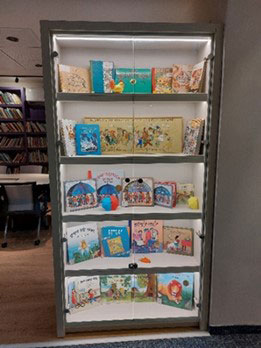 ארון תצוגה בכניסה לספרייה הראשית מוקדש לתרומתו הייחודית ומציג מבחר מקראות המתחלף מדי פעם.