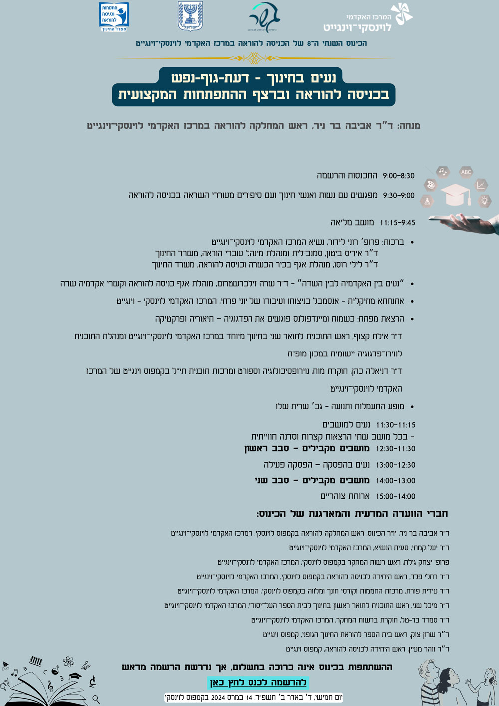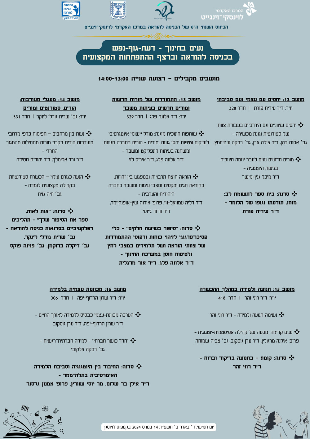 יום חמישי, ד באדר ב תשפ”ד, 14 במרס 2024 בקמפוס לוינסקי